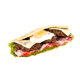 3 steaks, oeuf, jambon, crudités, sauce au choix.